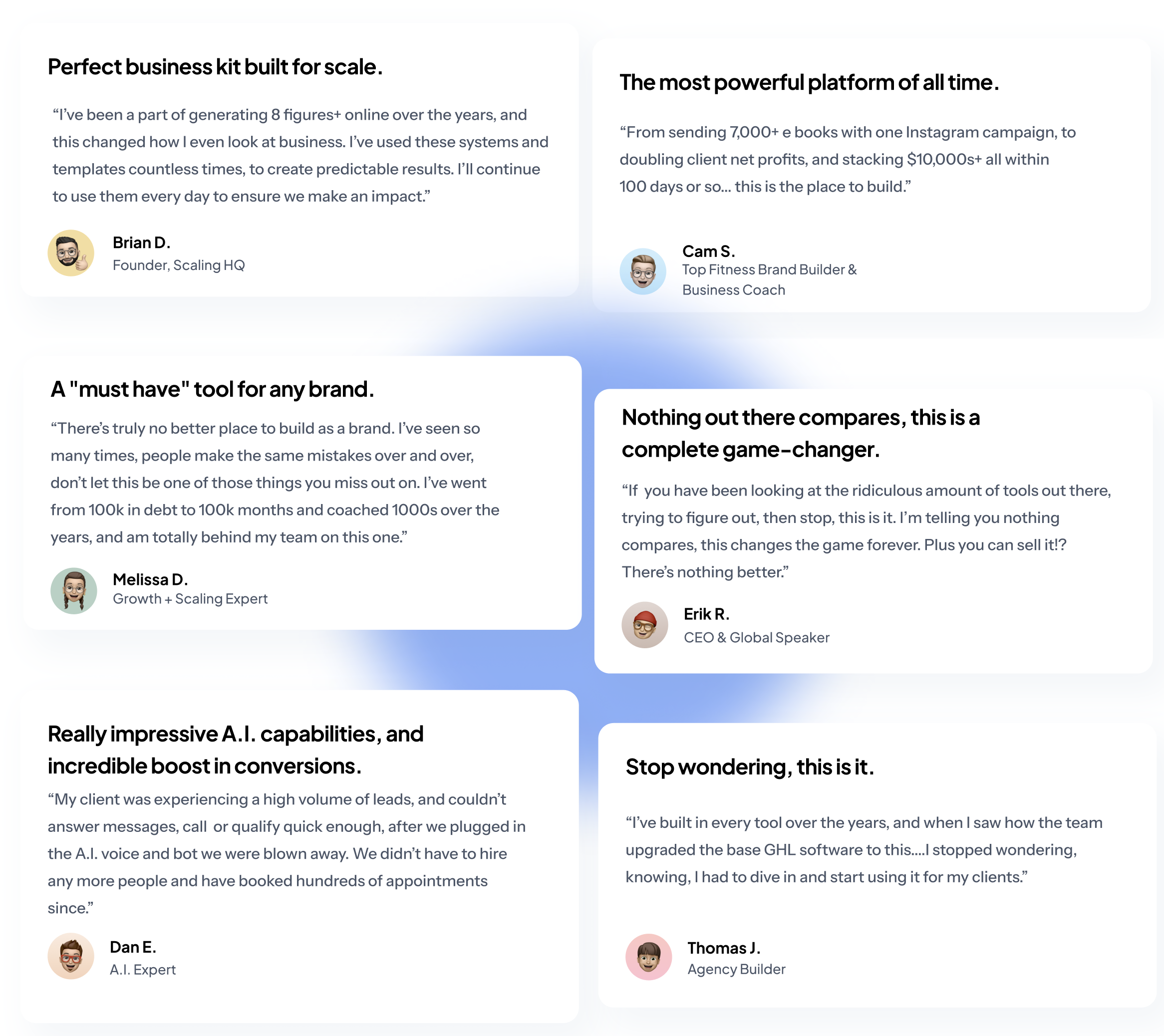 We know you're tired of trying to figure it all out, hiring tech specialists, and duct-taping your business together with zapier. Whether you’re looking to scale faster, automate more, or boost your sales, we’ve thought of everything so you don’t have to.