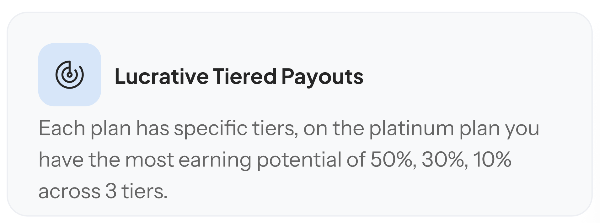 Each tier offers increased commission rates, rewarding your growth and commitment.