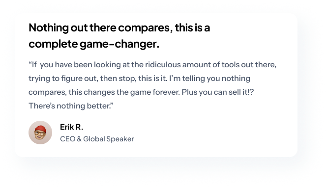 Upon signing up, we cover $5,000/m in plugins, and have added a $50,000+ pre-built business kit that includes ready-to-use systems, funnels, websites, email and text templates, automations, and more! The pre-built business kit has proven to produce the highest level of results possible. Plus we have a U.S. based support team that we invest in as well. Our platform is the most advanced version available, with a leadership team who has a track recorded of generating millions online.