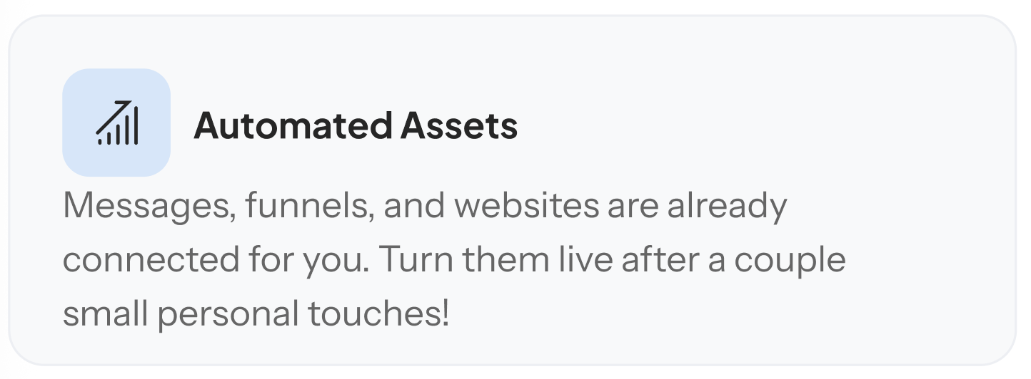 Build recurring wealth with our done for you assets and grow it in just a couple hours a week with your own custom white-label os!